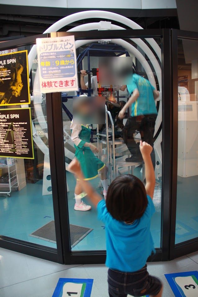 さて、再び展示ゾーンに来ました。昔、宇宙飛行士の訓練で使われていたというトリプルスピンを体験します。
