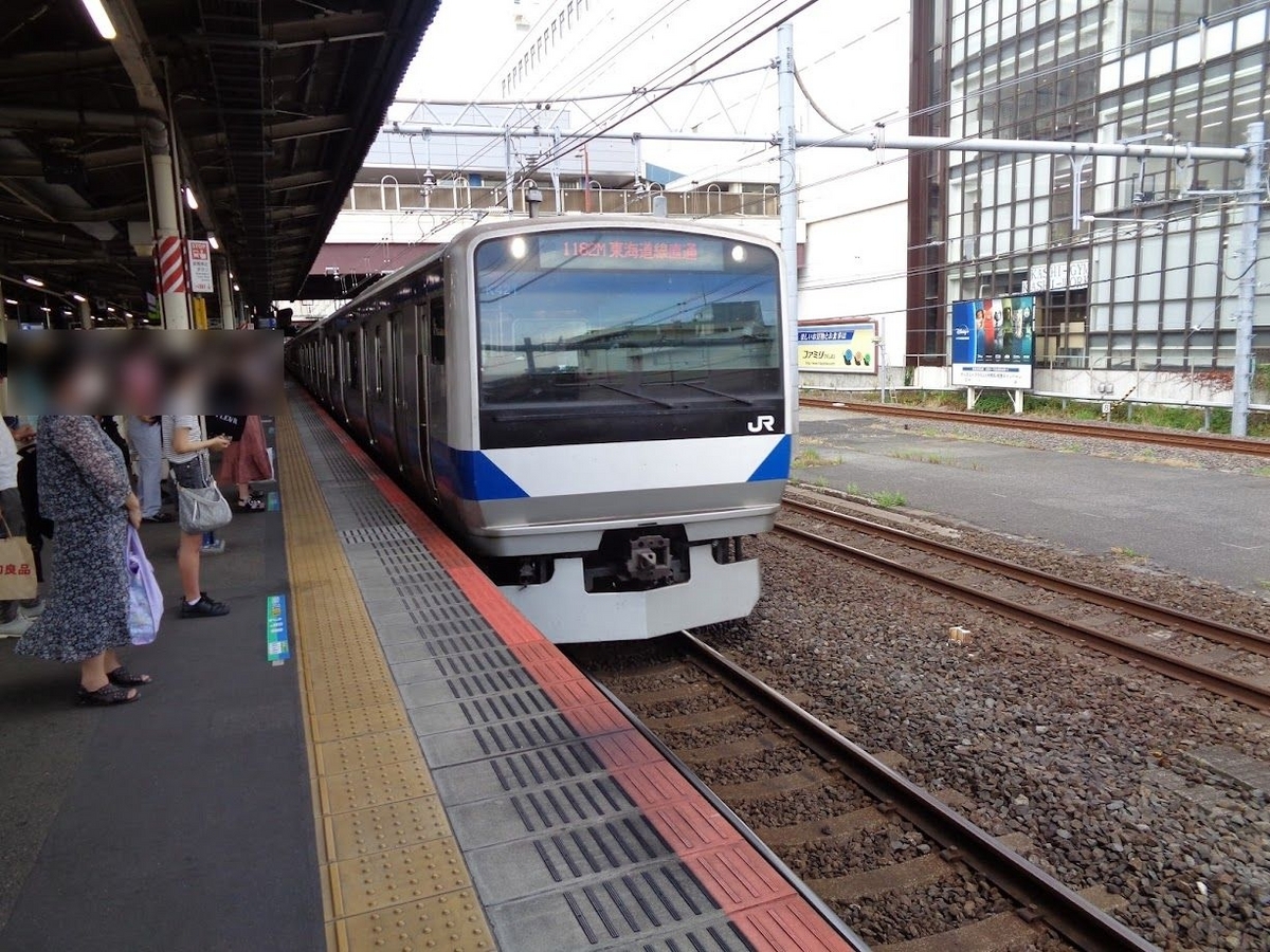 上野に到着です。特急湘南の車両、E257系が止まっていました。