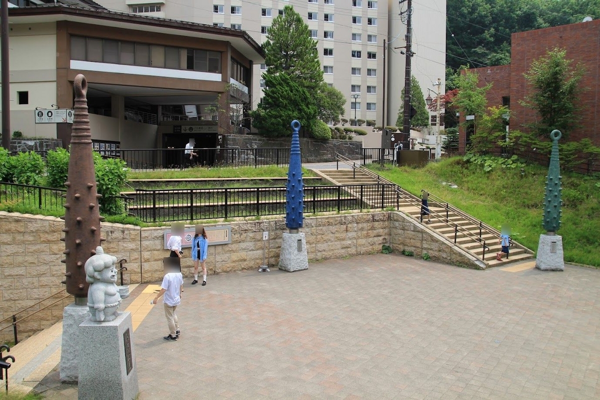 大型旅館が並ぶ通り沿いに、泉源公園があります。